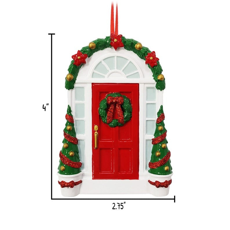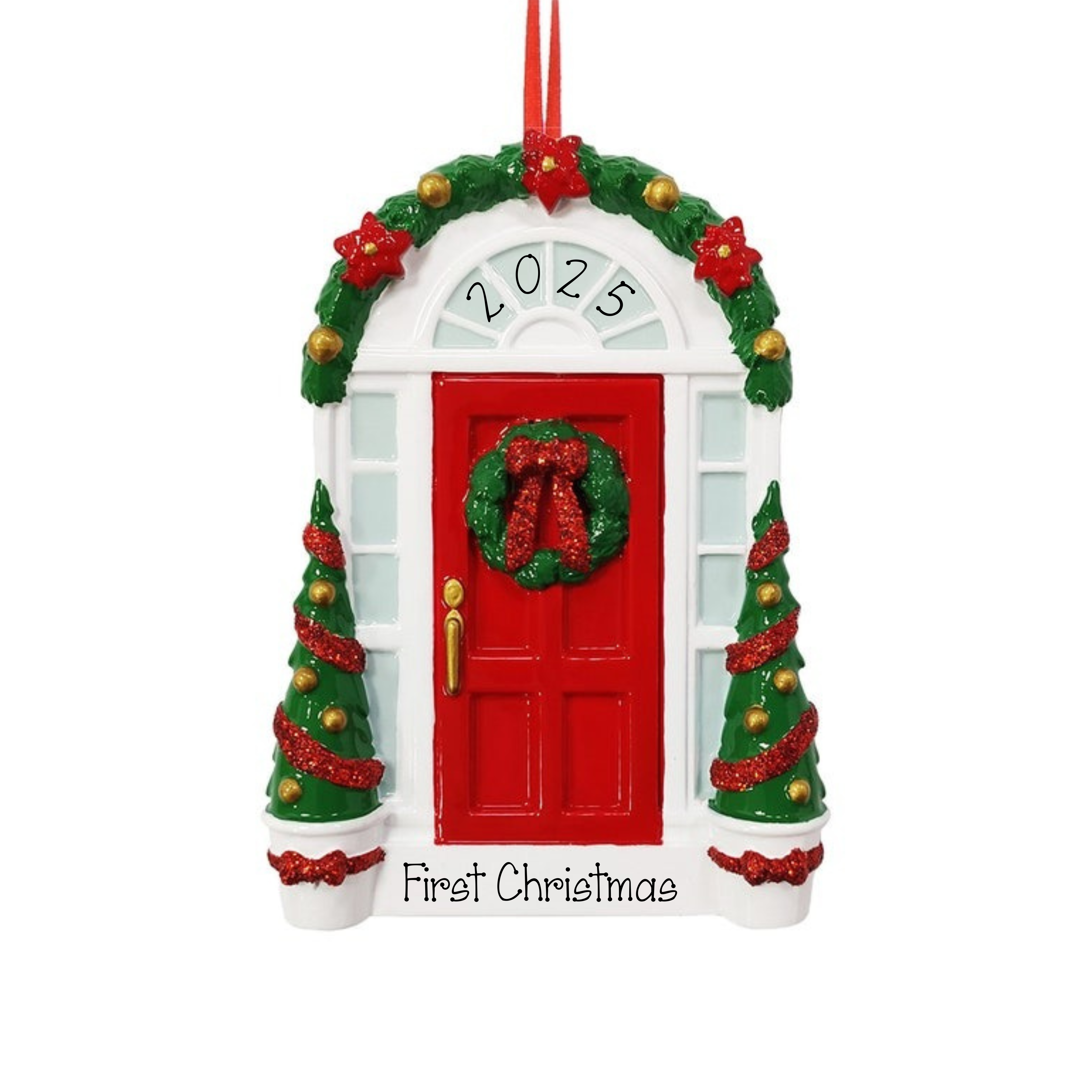 Red Door with Wreath Ornament ~ Personalized New Home Christmas Ornament