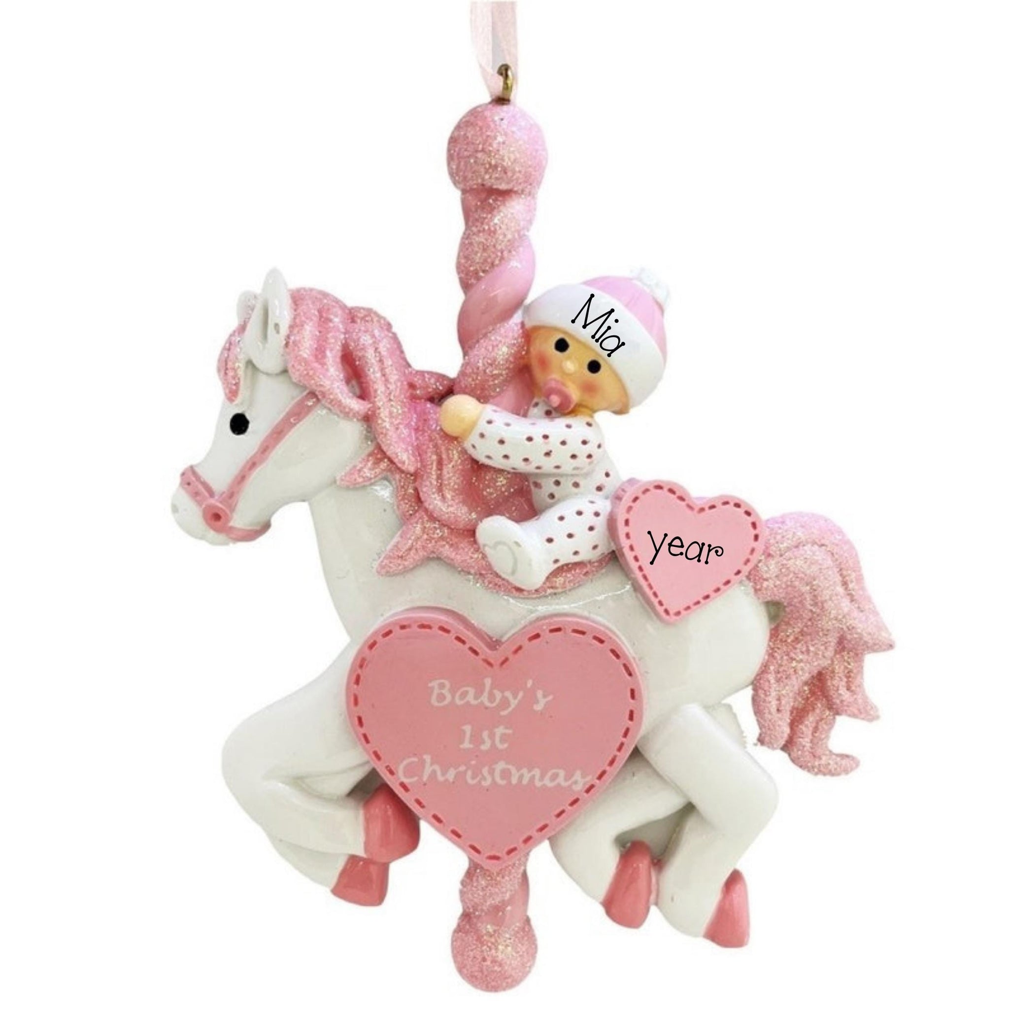 Personalized Baby's First Christmas Ornament ~ Carousel Baby Girl First Ornament
