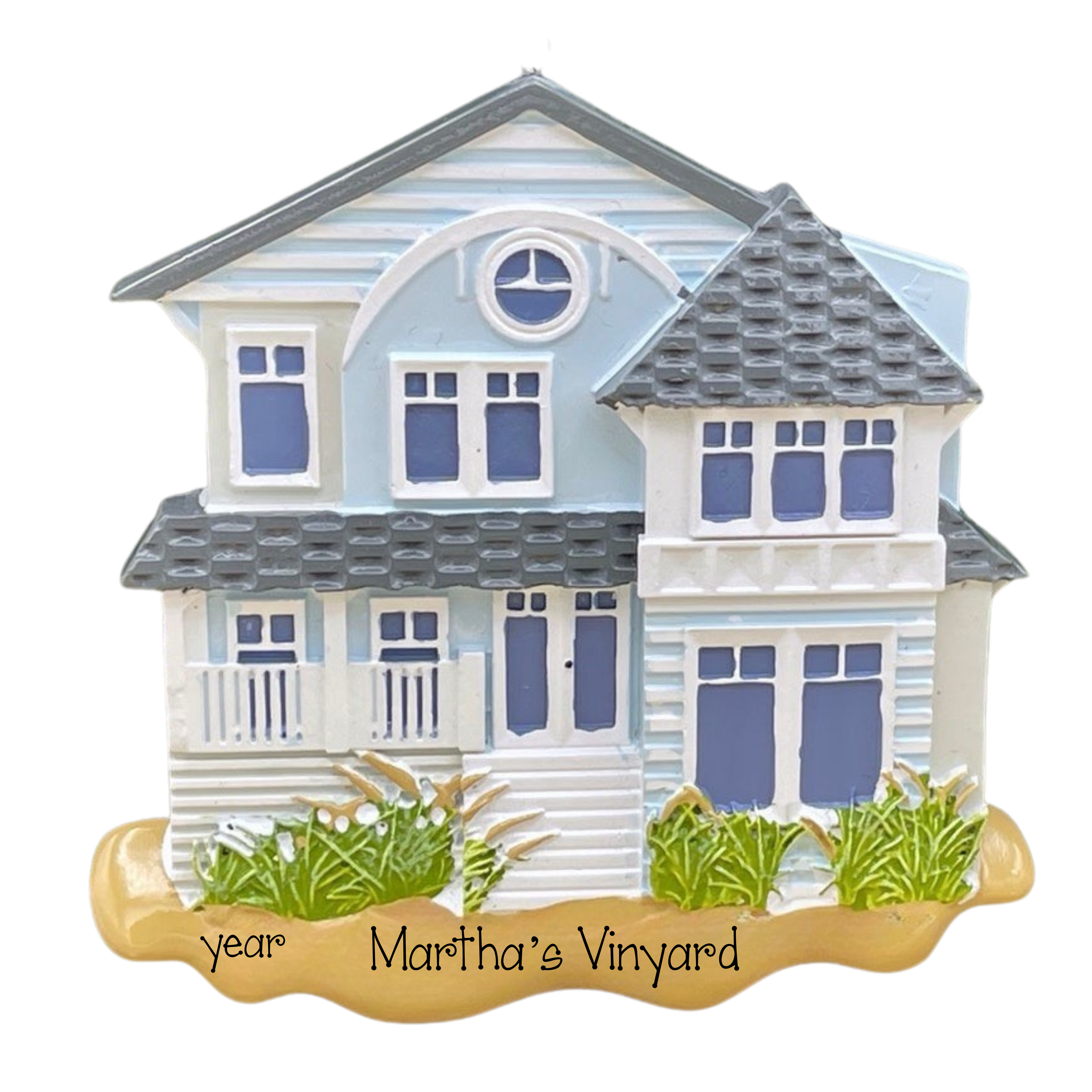 Personalized BEACH HOUSE Ornament ~ Family Vacation Ornament ~ Blue Beach House