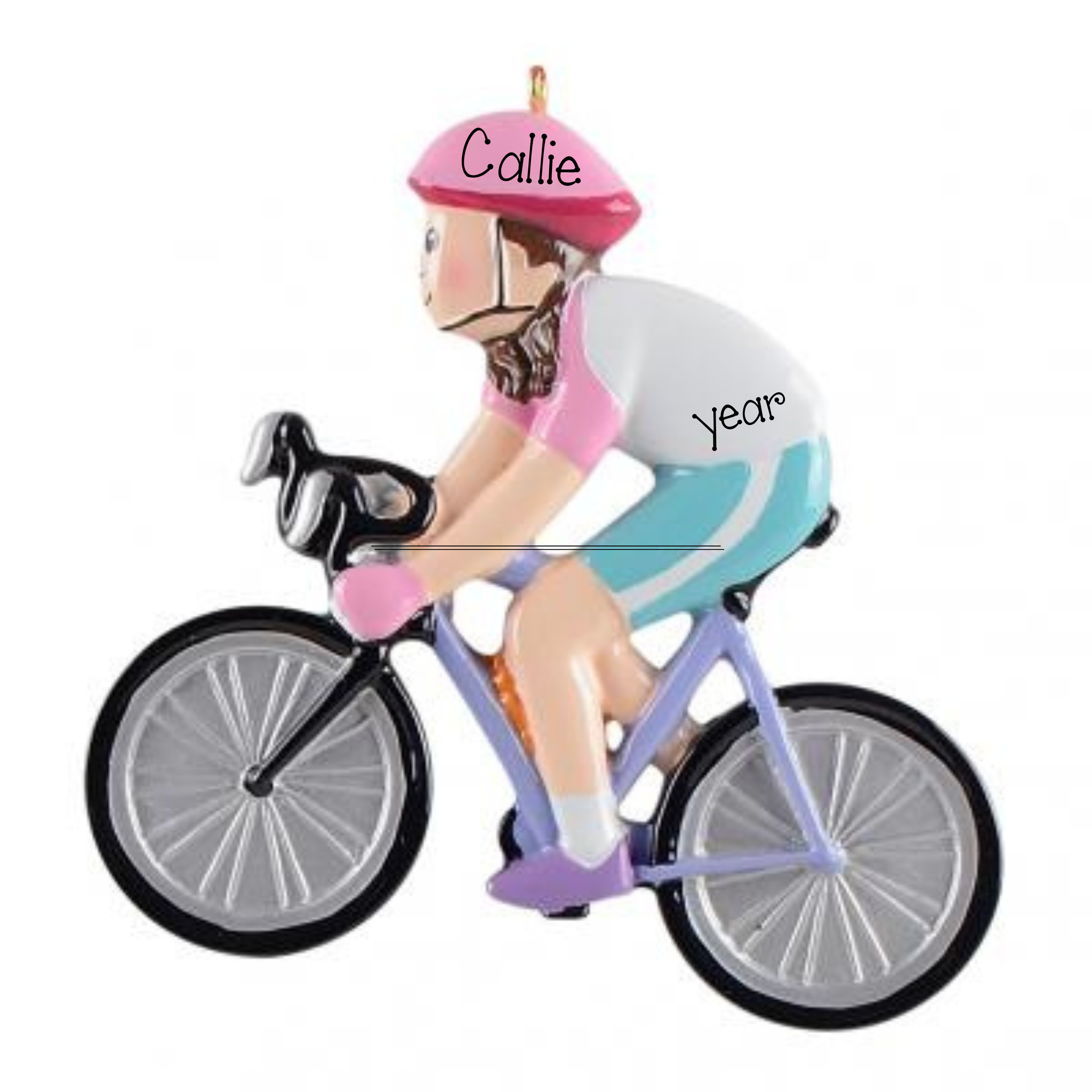 Personalized Bicycle Christmas Ornament ~ Mountain Bike Ornament ~ Female Cyclist ~ Exercise