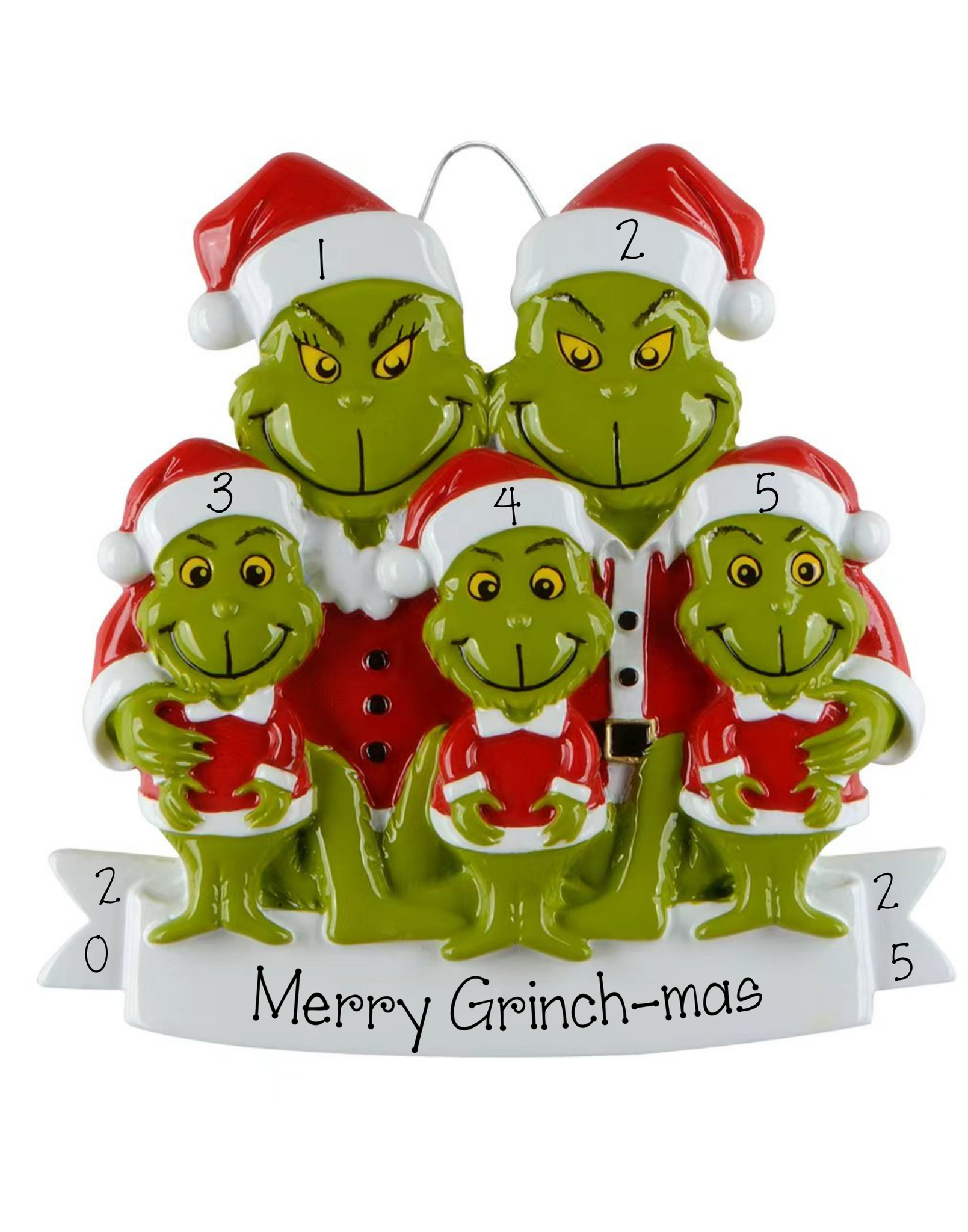 Personalized Family of 5 Grinch Christmas Ornament ~ Family of 5 Merry Grinch-mas